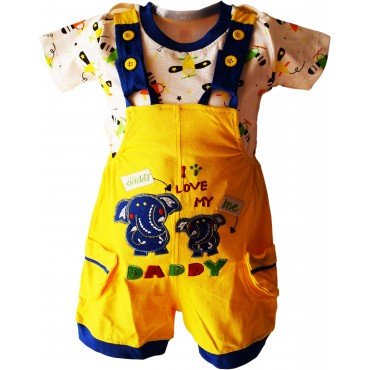 NammaBaby Premium Dungaree with Short Sleeves T-Shirt I Love Daddy Print- Three Colors (Red , Yellow , Blue)- Three Size (0 , 1 , 2)- Product Comes in the Single Piece Box Packing..